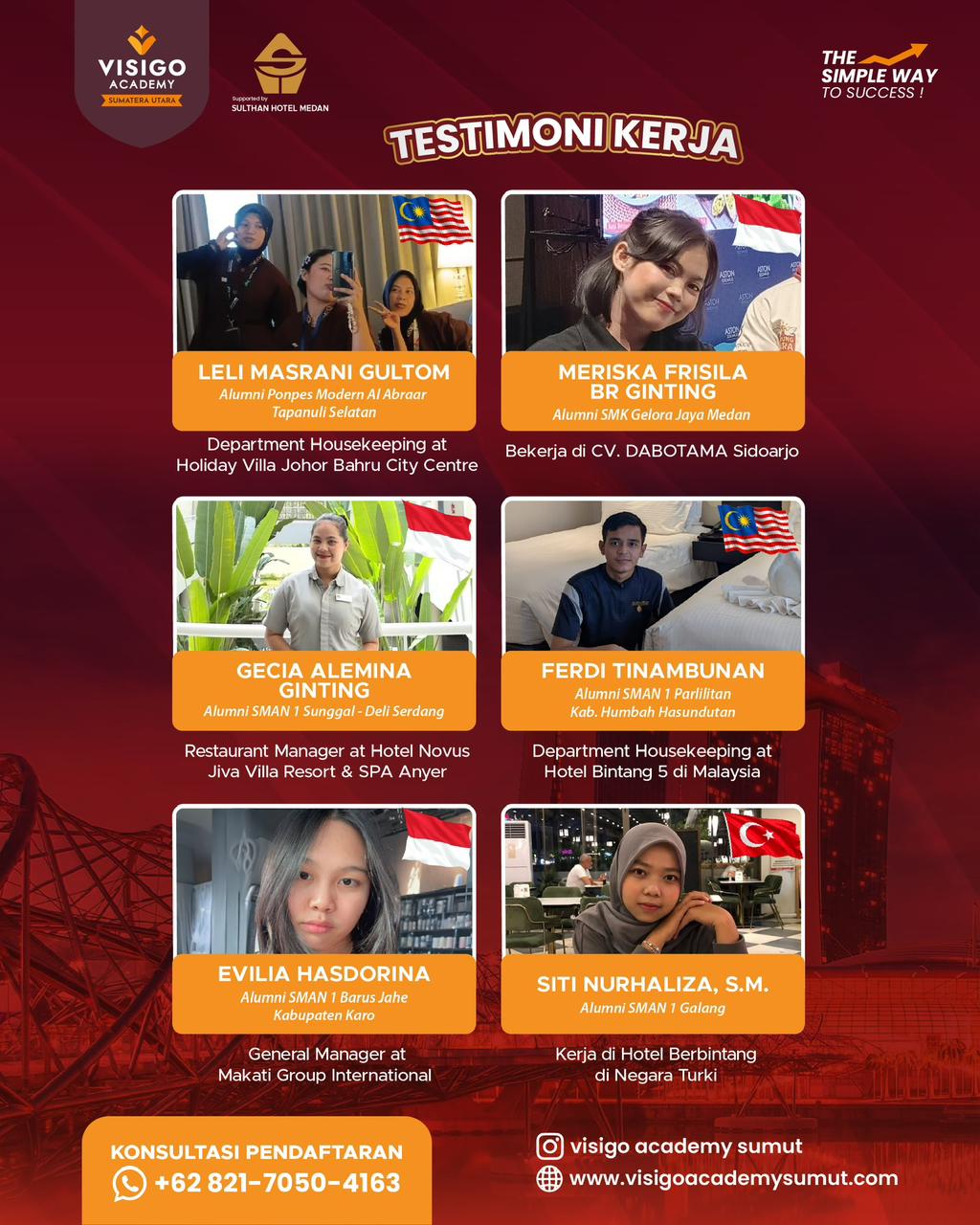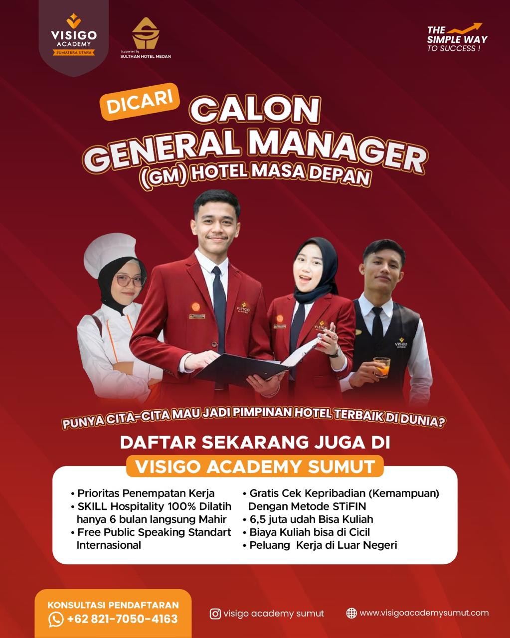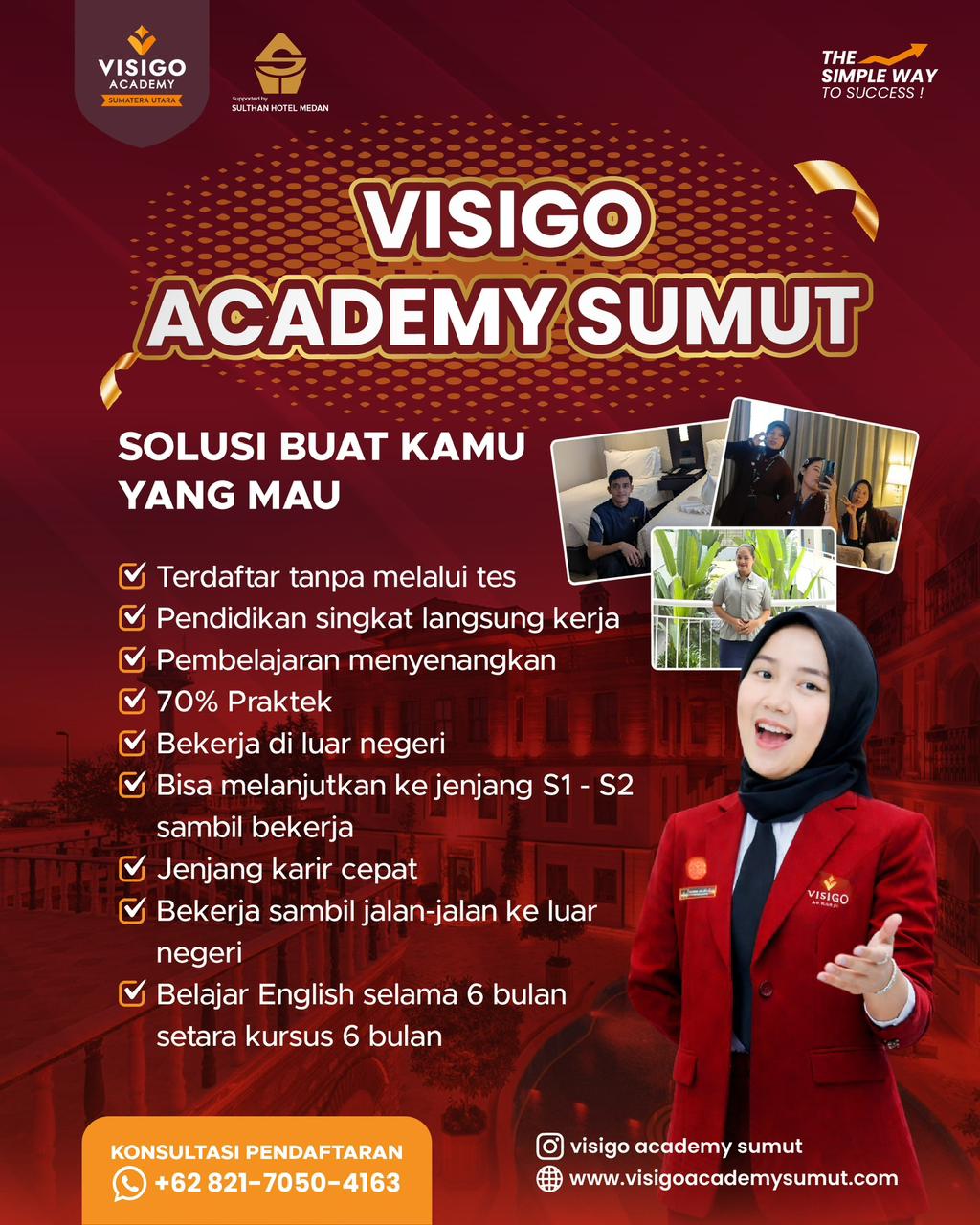 VISIGO Academy merupakan Lembaga pendidikan profesional pariwisata perhotelan yang menjadikan lulusannya bisa diserap kerja oleh industri pariwisata dalam maupun luar negeri. VISIGO academy juga memiliki program Twinning Lanjutan D3, S1, S2 Dan S3.